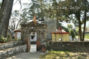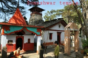 Someshwar temple is a very old Shiva temple. Someshwar is about 12 kms from Kausani and 35 kms from Dwarahat. Its main entrance is very inconspicuous and one is liable to miss it easily. So after crossing mall area of Someshwar town, one has to start looking for a small board amidst old shops. From a old board depicting the entry to the temple, one has to walk about 100 meters on a narrow path to reach the temple.