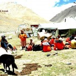 Manas Sarovar has Brahma Parvath on one side and Mt. Kailash on the other. Usually the trip is planned in such a way that we would reach Manas Sarovar on a full moon day. Even our trip was also scheduled in that manner, but since our visa was delayed by two days, we could not reach on full moon day. Some say that, there will be spectacular meteor shower at the night on full moon day. But we could not see any because of the delay. We were provided accommodation on the banks of Manas Sarovar. The lodge had half a dozen rooms and each room with six beds. No power and hot water as usual! We had to ease ourselves in the open air.