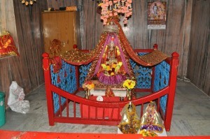 The original idol is kept on a window, which is on the left side of sanctu. The belief is after some years Maa Durga appeared in someone’s dream and asked for a swing. So people thereafter placed the idol on a wooden swing inside the sanctum. Since then Maa Durga is called Jhula Devi.