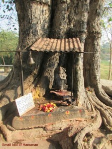 Steps are provided to reach the river Shimsha, from the temple complex. A small idol of Hanuman is placed under a big tree in front of the temple before the steps.