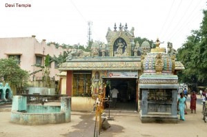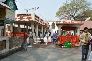 devi, and at her back, on a small platform, coconuts are broken. Just left to