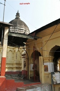 Walking back on the same road from main Kamakya temple, to the left, after Maa Tara temple, we can find Maa Kali temple easily.
