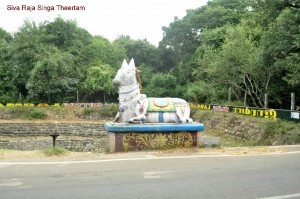 There is a pond opposite to this shrine called Siva Raja Singa theertam and a Nandi being installed on the banks of the pond. A small temple for lord Vinayaka temple is at one corner of the pond.