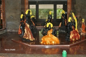 of Durga in the middle of sanctum with nine Lingas and nine Shaktis on either
