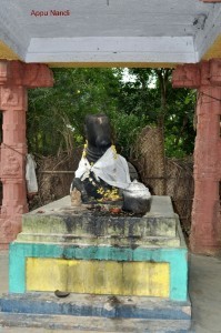 Appu Nandi next to Yama Lingam. One has to look at the Arunachala hill between