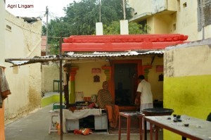 After trekking for 1.5 kms there is the shrine for Agni Lingam the second of the Ashta Dik Lingam on Girivalam route.This is also in the midst of houses and quite inconspicuous.